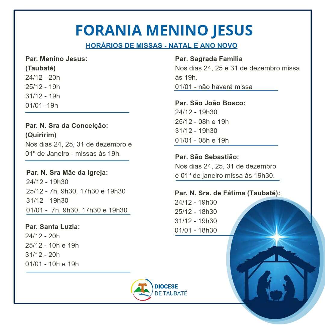 Horários de Missa das Paróquias da Forania Menino Jesus ( Taubaté):