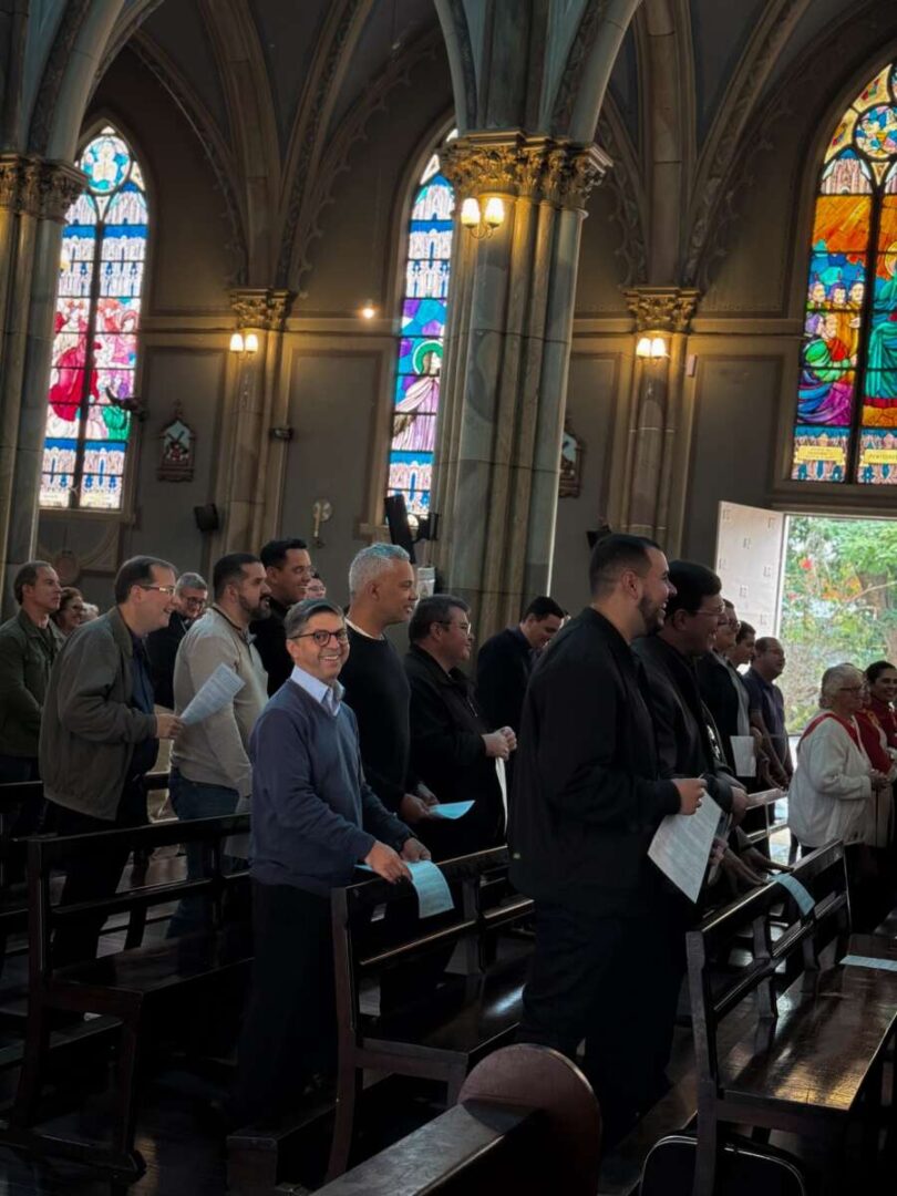 Nesta sexta-feira, 27 de julho de 2025, pela manhã o Clero da Diocese de Taubaté se reuniu no Santuário de Santa Teresinha para celebrar o Dia de Orações pela Santificação dos Sacerdotes.
